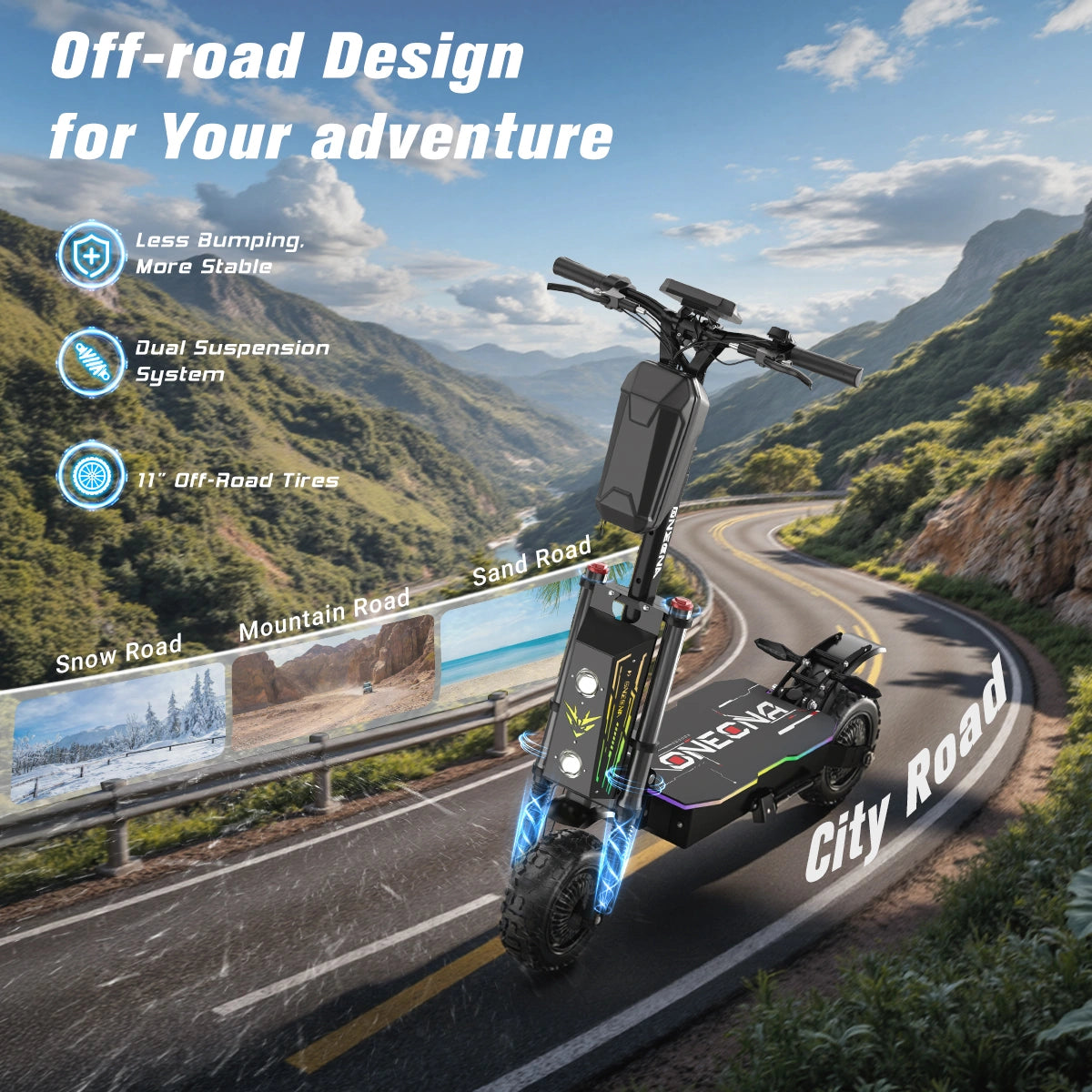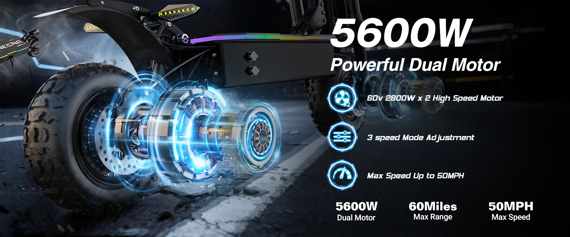 Grab the Onecna GT8 PRO 2-Pack for unbeatable value! Each scooter boasts 5600W peak power for zippy acceleration, a 60V 33Ah battery that delivers a 60-mile range—perfect for daily commutes or fun rides. Hit 50MPH for thrilling speed, carry up to 550LBS with ease, and conquer 35° slopes without sweat. Buy two and save big—ideal for sharing with a buddy or outfitting your team.